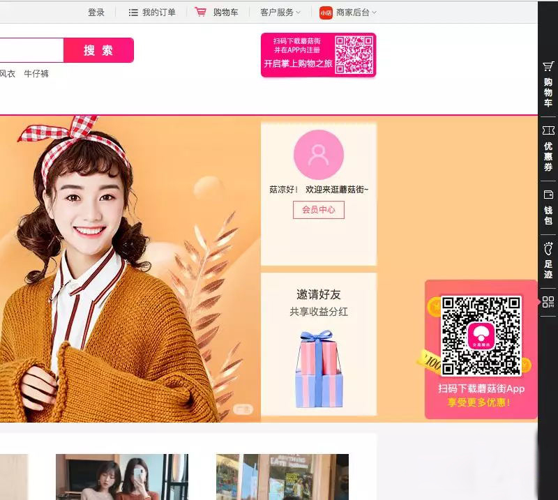 二維碼外置類:此類用于電商類網站較多,且與側邊欄同用,方便下載,再加上運營類文案的的吸引強,能夠很快抓住用戶的眼球,且無需點擊或鼠標移動,便可直接拿出手機掃碼。對于用戶的操作行為是最為精簡的。唯一需要注意的是,在二維碼周圍的空間盡量要保持留白,使得二維碼能直接被用戶所看見,如果在比較雜亂的網站上,那么加上二維碼,也很難被發現,除非二維碼放的足夠的大,但空間利用率就會降低很多。